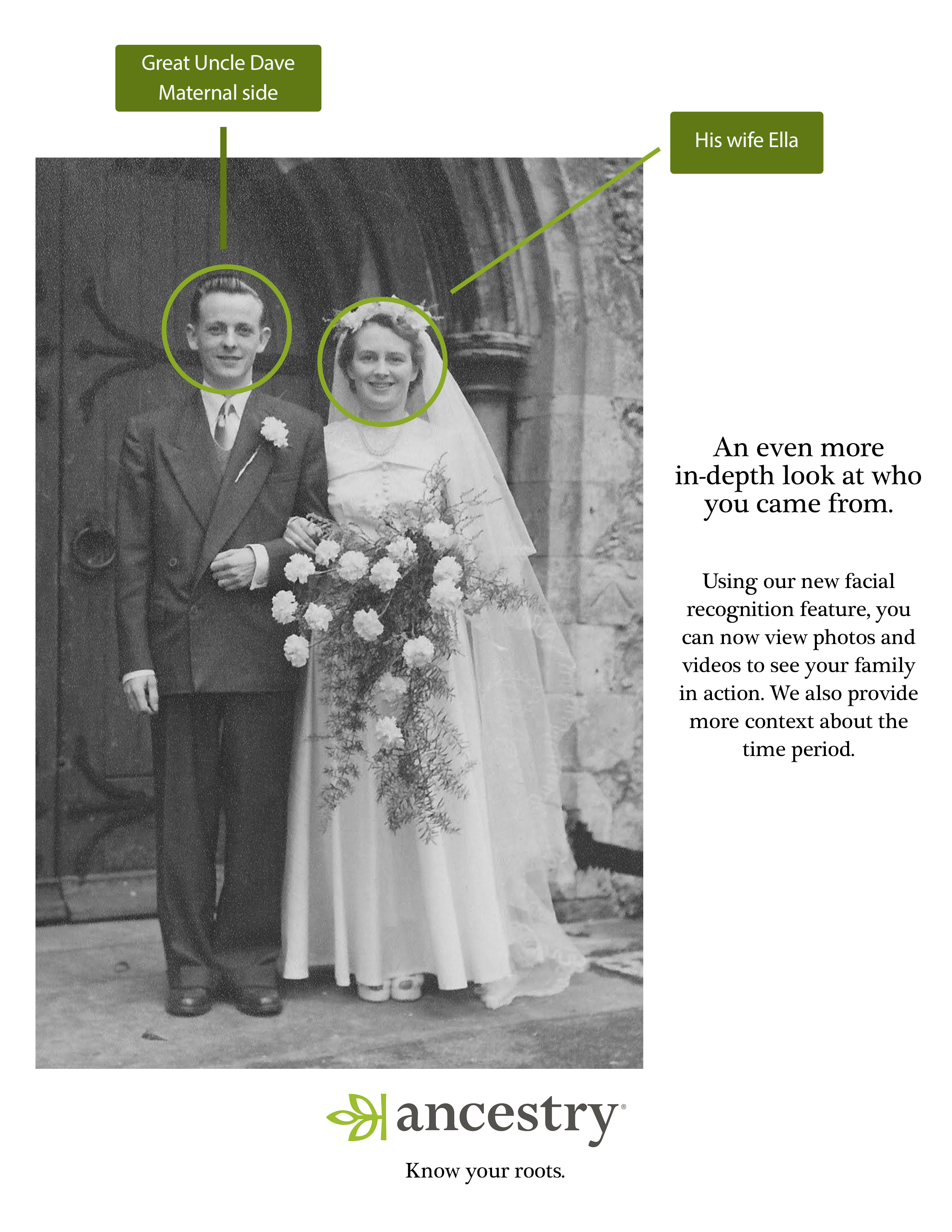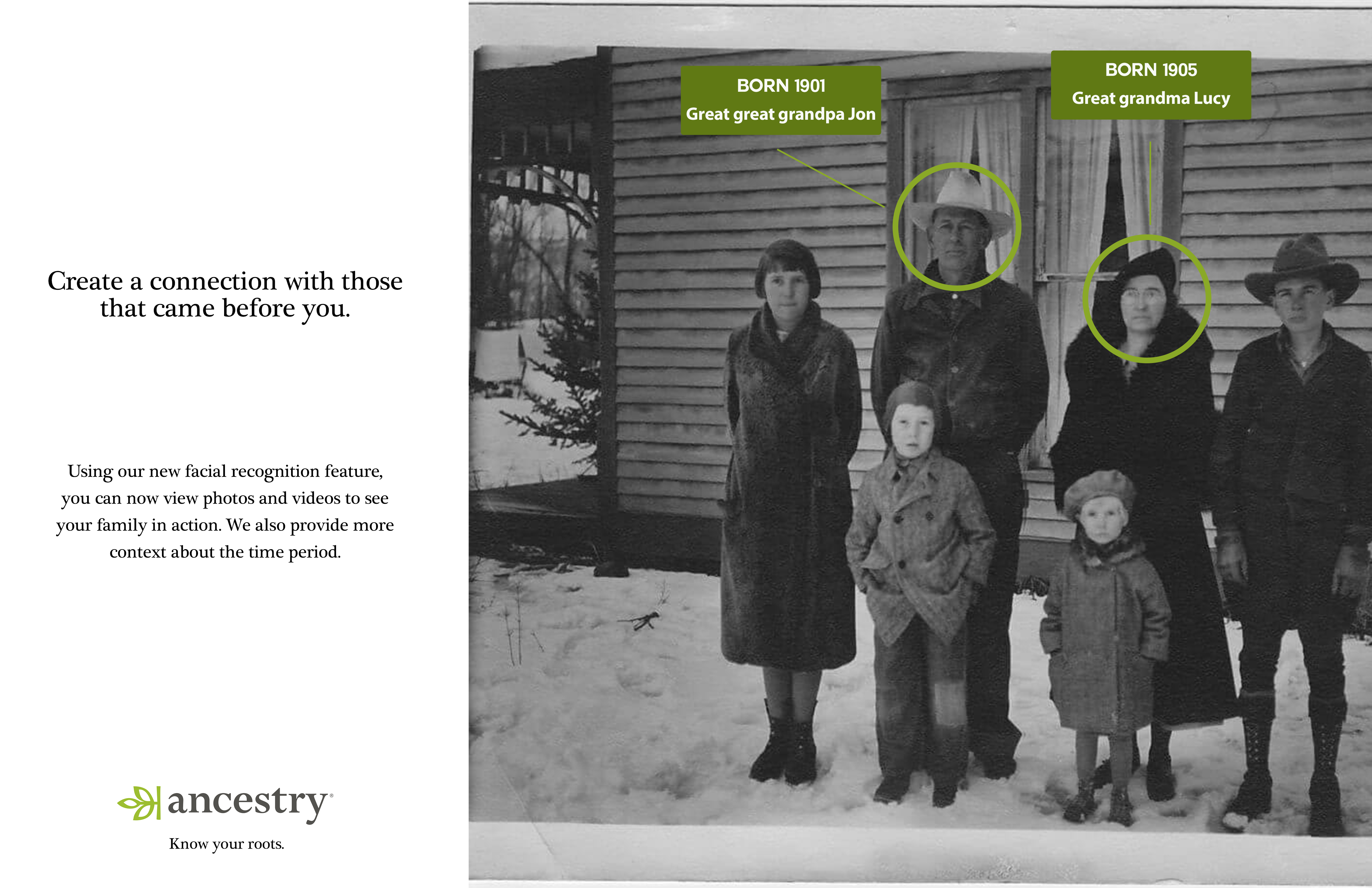 A video along with print and social ads detailing a new tech concept for Ancestry.com. It would allow