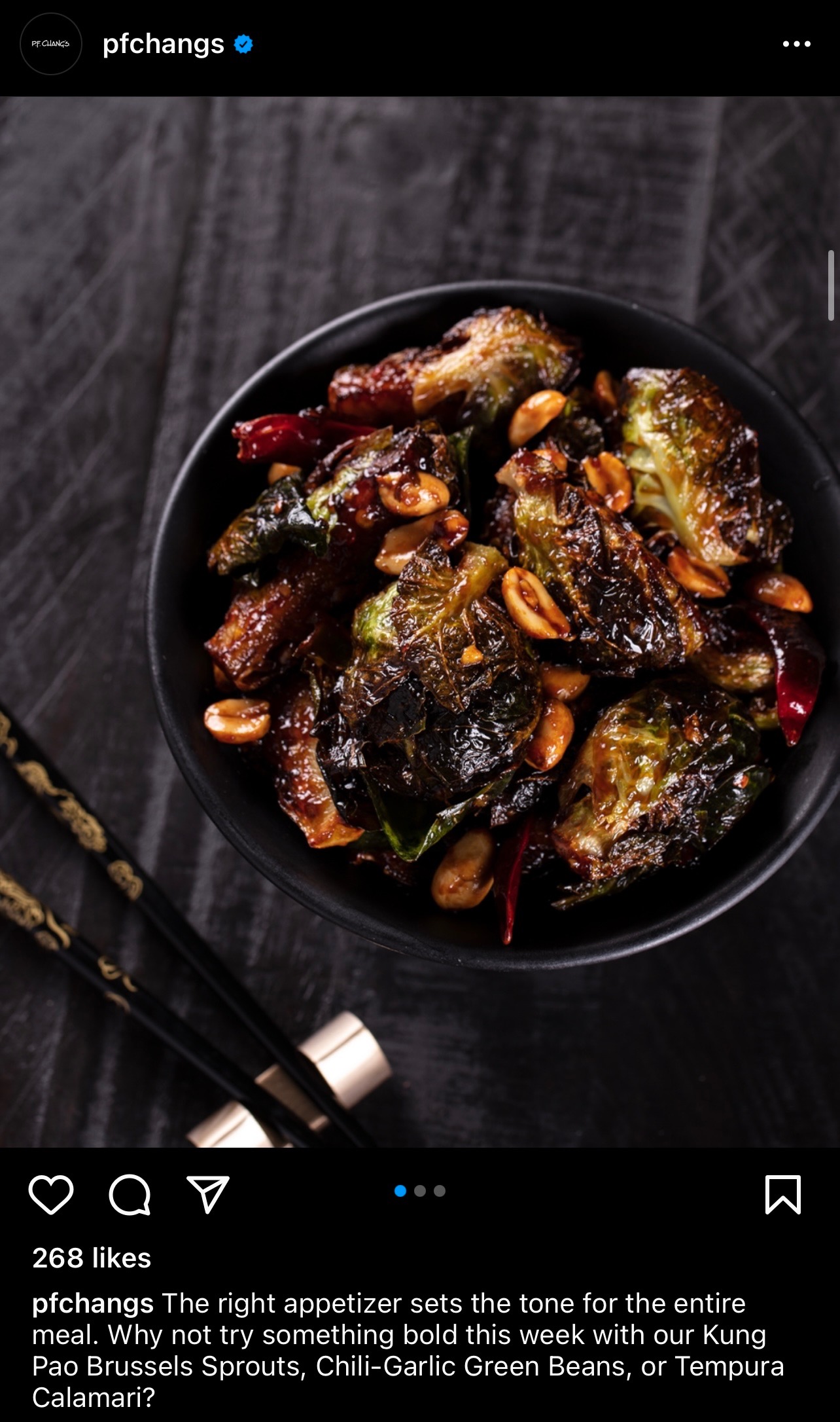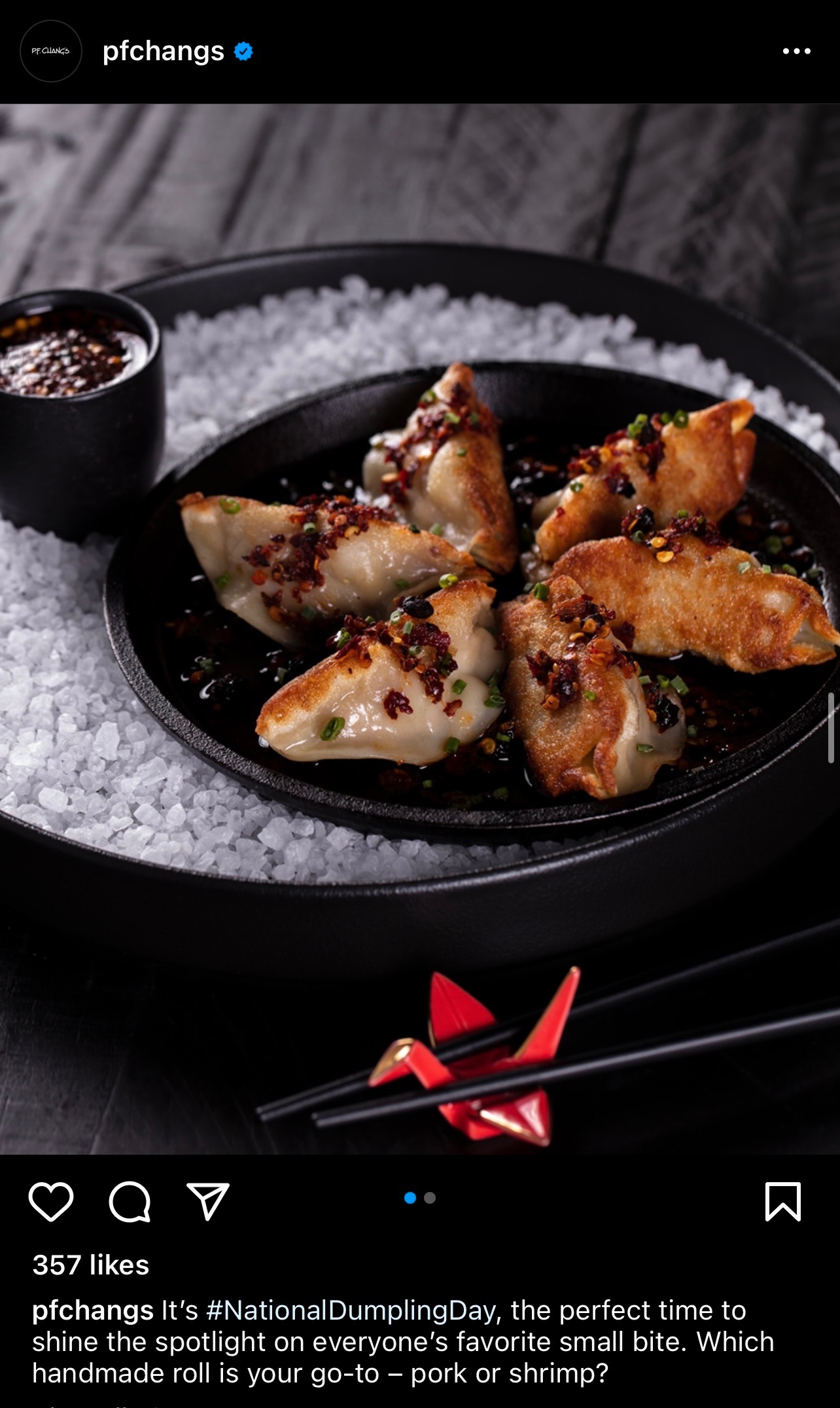 As a Freelance Copywriter for P.F. Chang’s, I assist their main copywriter with the national social media pages to create dynamic captions.